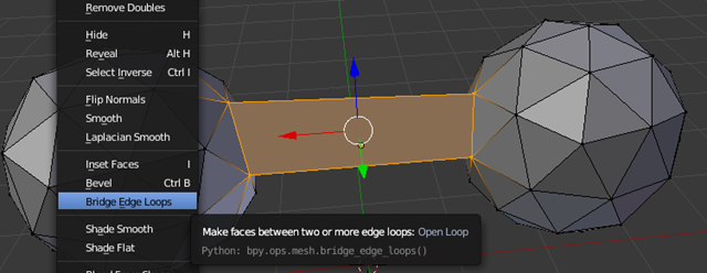 Y presionando la Tecla W seleccionamos la opción Bridge Edge Loops